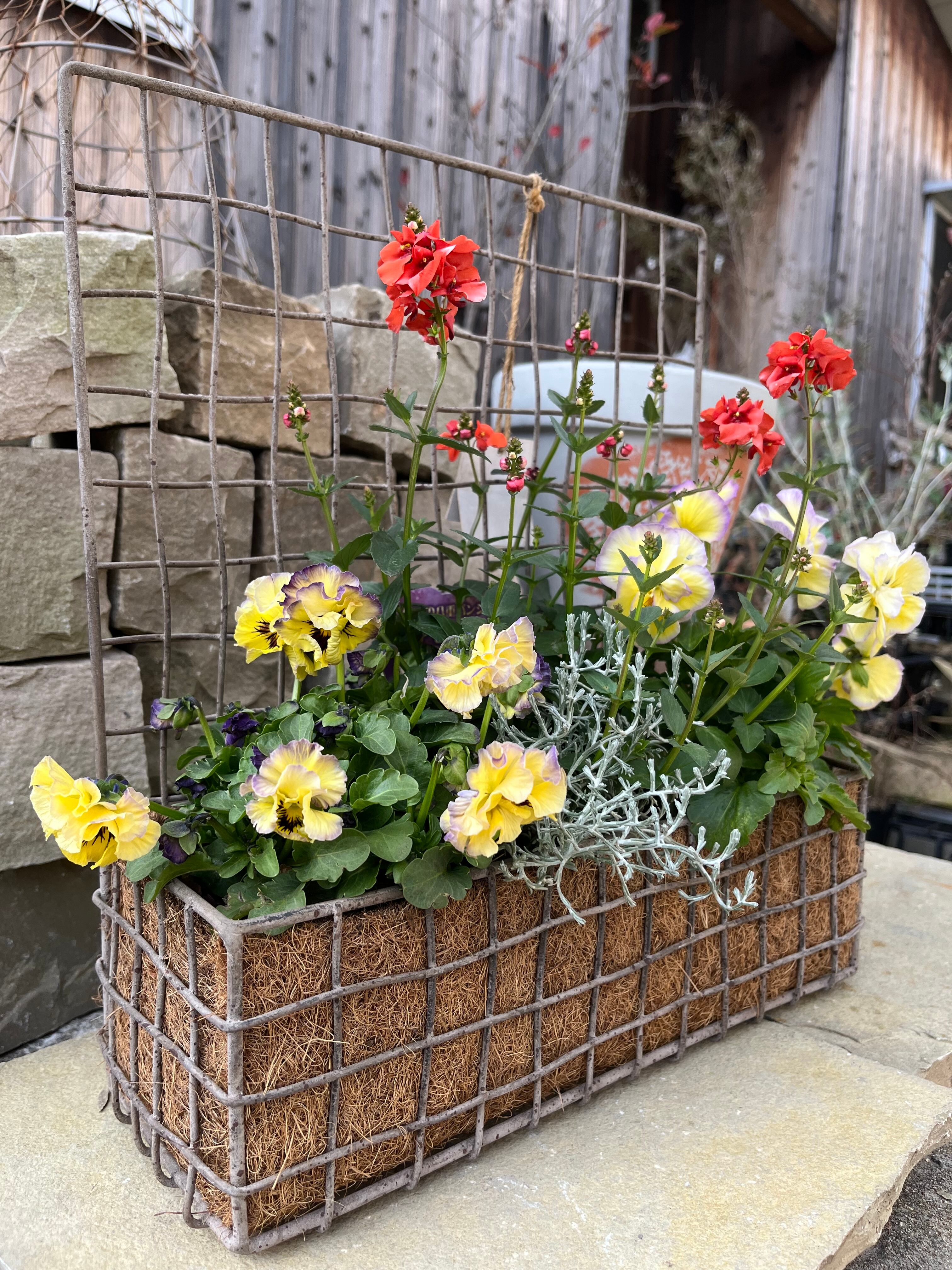 にココファイバーマットを敷き込み、培養土にて植え込み。
